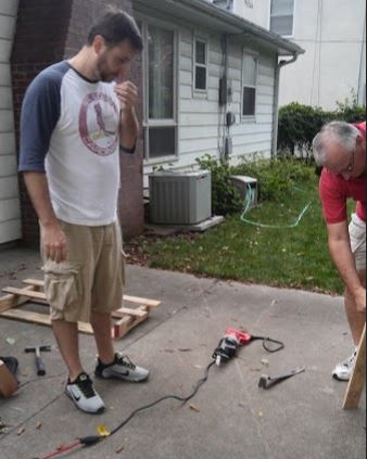 While I was in KC, I saw this Pin on Pinterest about a coffee rack thing made out of a pallet and had the inkling to want to make it. I told both Doug and Duane that and the next thing I know, we’re on our way to Sutherlands to go buy a pallet and some hooks.
